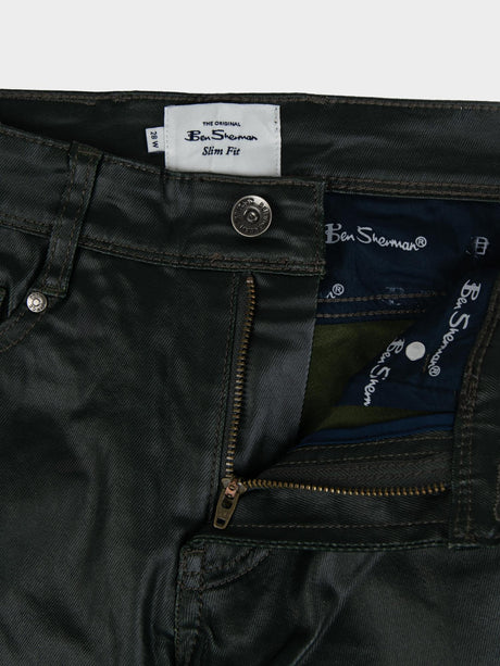 Wax Coated Sheen Slim Fit Denim - Olive