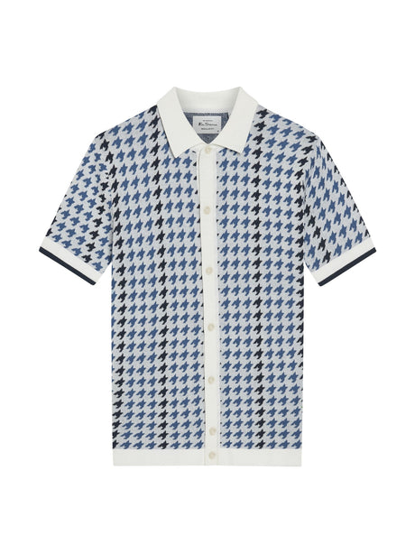Houndstooth Button Through Polo in Ivory