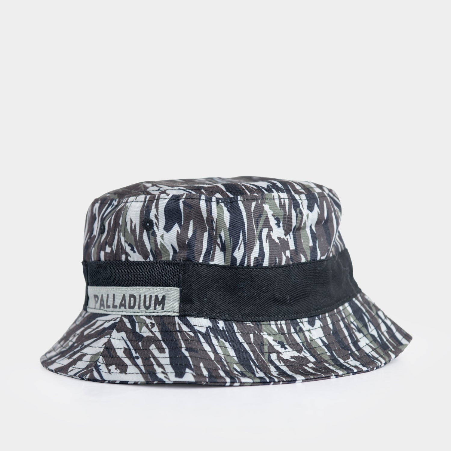 Inspired by Palladium’s heritage of function and movement, the Vintage Bucket Hat features an all-over camo-style print, contrast band detail, and breathable mesh panels. Lightweight and practical, it’s made for daily wear with a utility-driven feel.